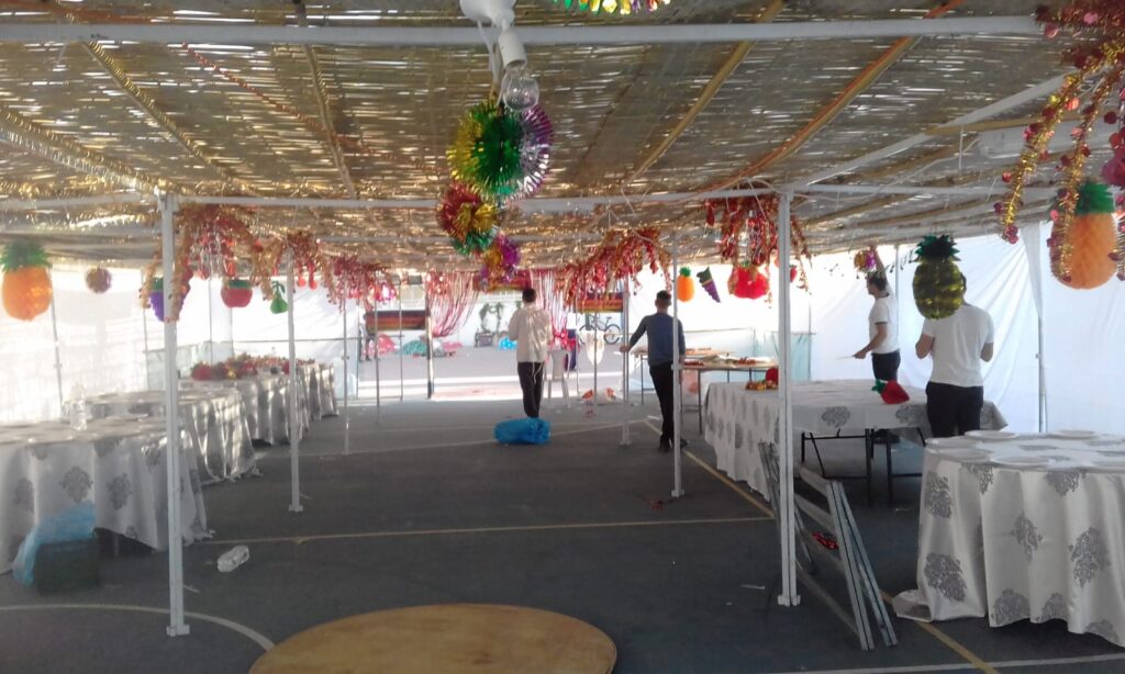 סוכה להכנסת ספר תורה חגיגה מרגשת – צריך סוכה שמכבדת את התורה. סוכה גדולה, יציבה, עם מקום לציבור, ספרי תורה וניגונים.